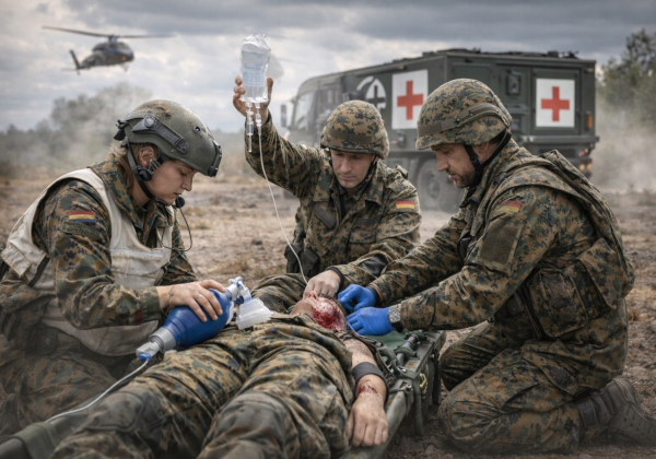 Foto: (M.L.) Der Sanitätsdienst der Bundeswehr stellt die medizinische Versorgung der Soldatinnen und Soldaten sicher – im Alltag, bei Übungen und im Einsatz. Als Teil des Unterstützungsbereichs verbindet er militärische Anforderungen mit moderner Medizin und spielt eine zentrale Rolle in einer sich verschärfenden sicherheitspolitischen Lage. Er stellt die gesundheitliche Einsatzbereitschaft der Soldatinnen und Soldaten dauerhaft sicher.