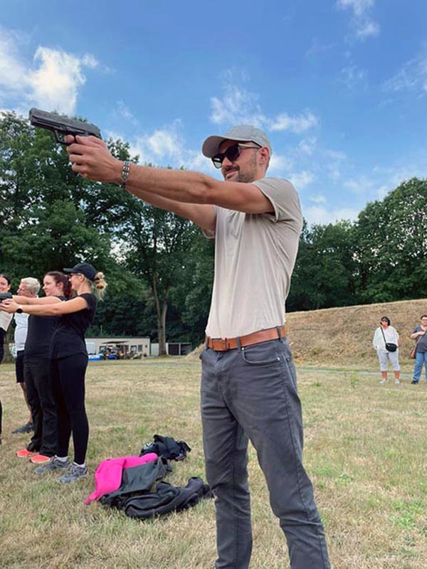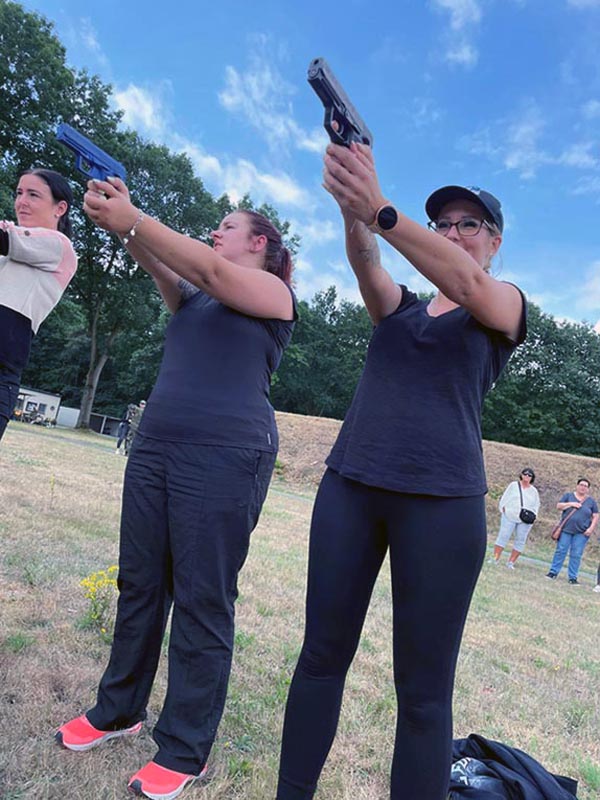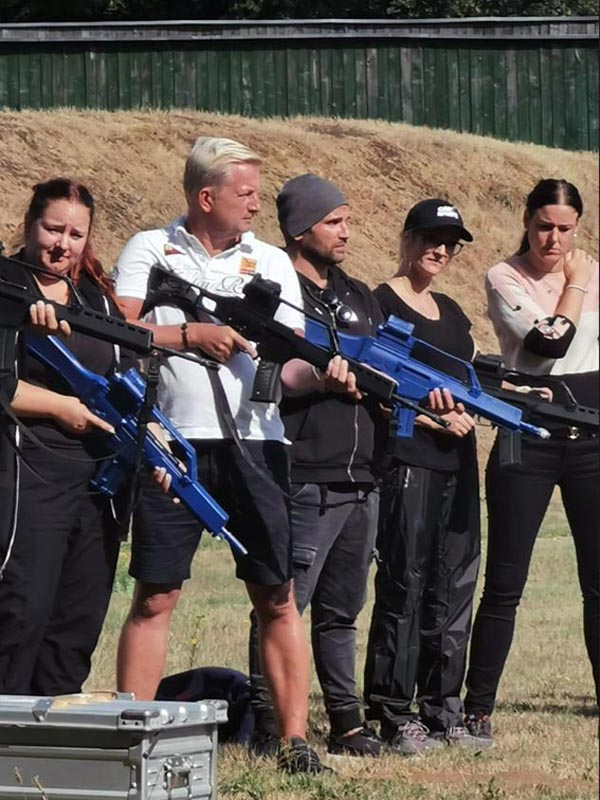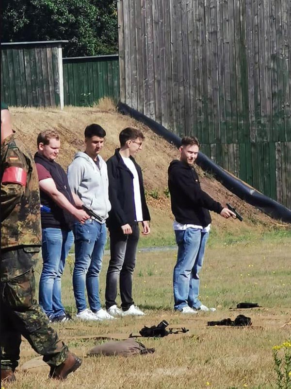 Der nächste morgen begann entsprechend mit einem militärischen Wecken. Im Anschluss verlegten alle zur Standortschießanlage. Hier fand für die Koop-Partner und Familienangehörigen, nach einer Tasse Kaffee und einem Brötchen, die Einweisung in die Waffen P8 und G 36 statt. Nach erfolgreicher und nachgewiesener Einweisung wurde scharf geschossen.